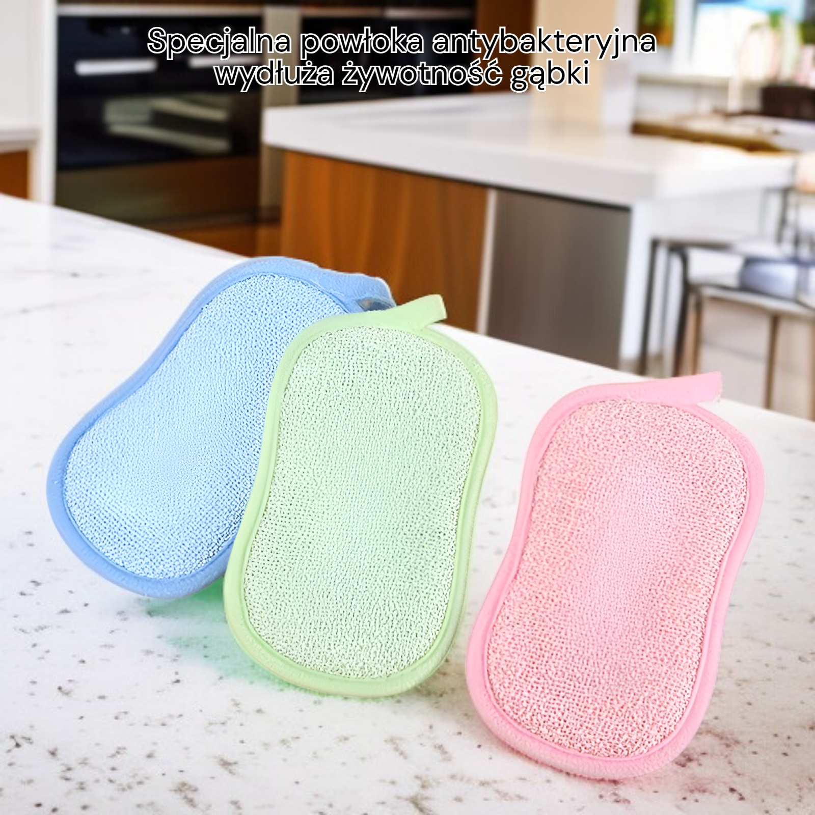 ● Specjalna powłoka antybakteryjna przedłuża żywotność gąbki i pozwala na dłuższe, bezpieczne użytkowanie bez nieprzyjemnych zapachów i pleśni.